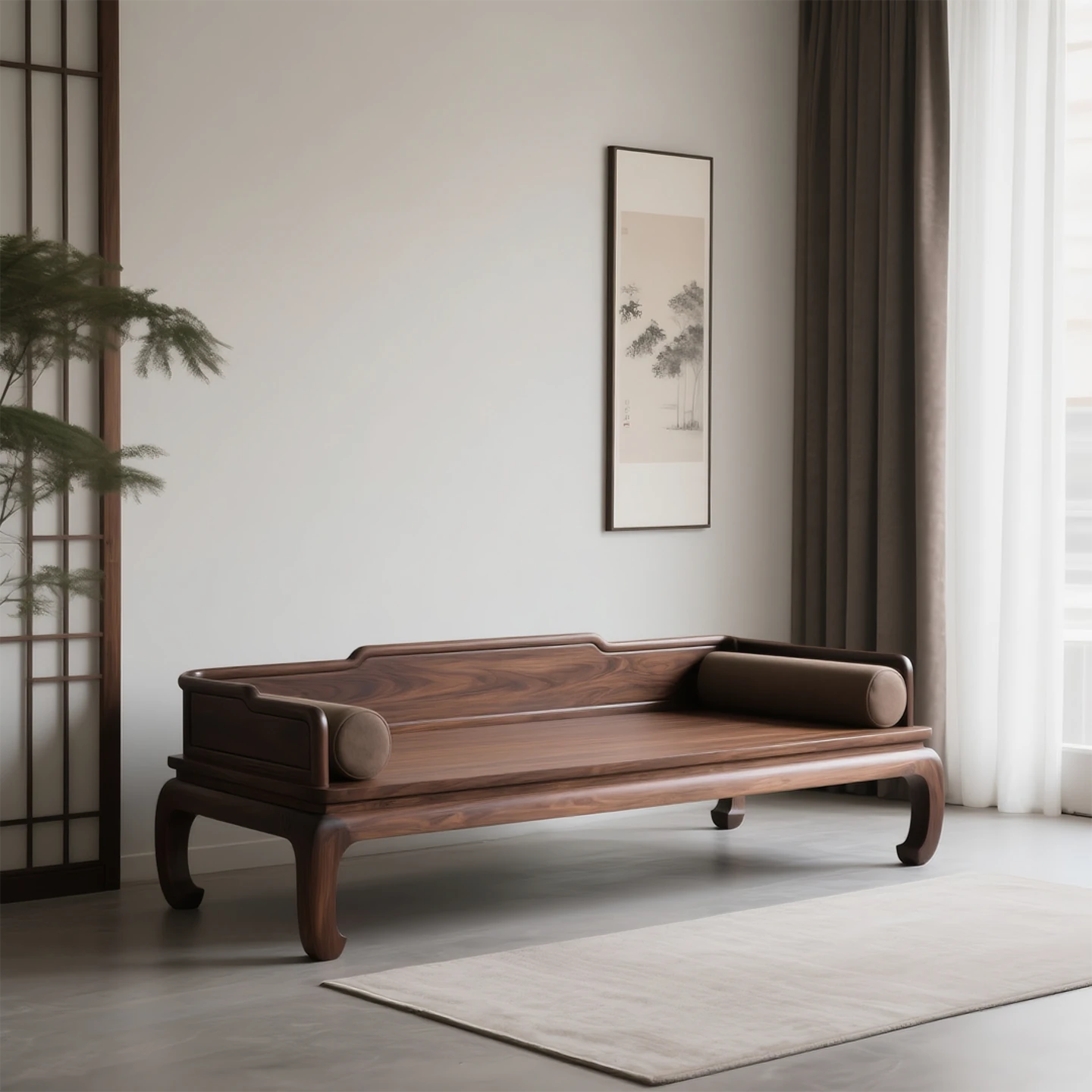 Modern Minimalist Solid Wood Northern American Black Walnut Rohan Bed – Elegant Sofa Bed for Living Room & Tatami Style, Perfect for a Cozy Home Setup