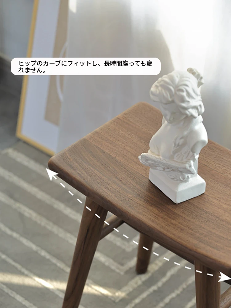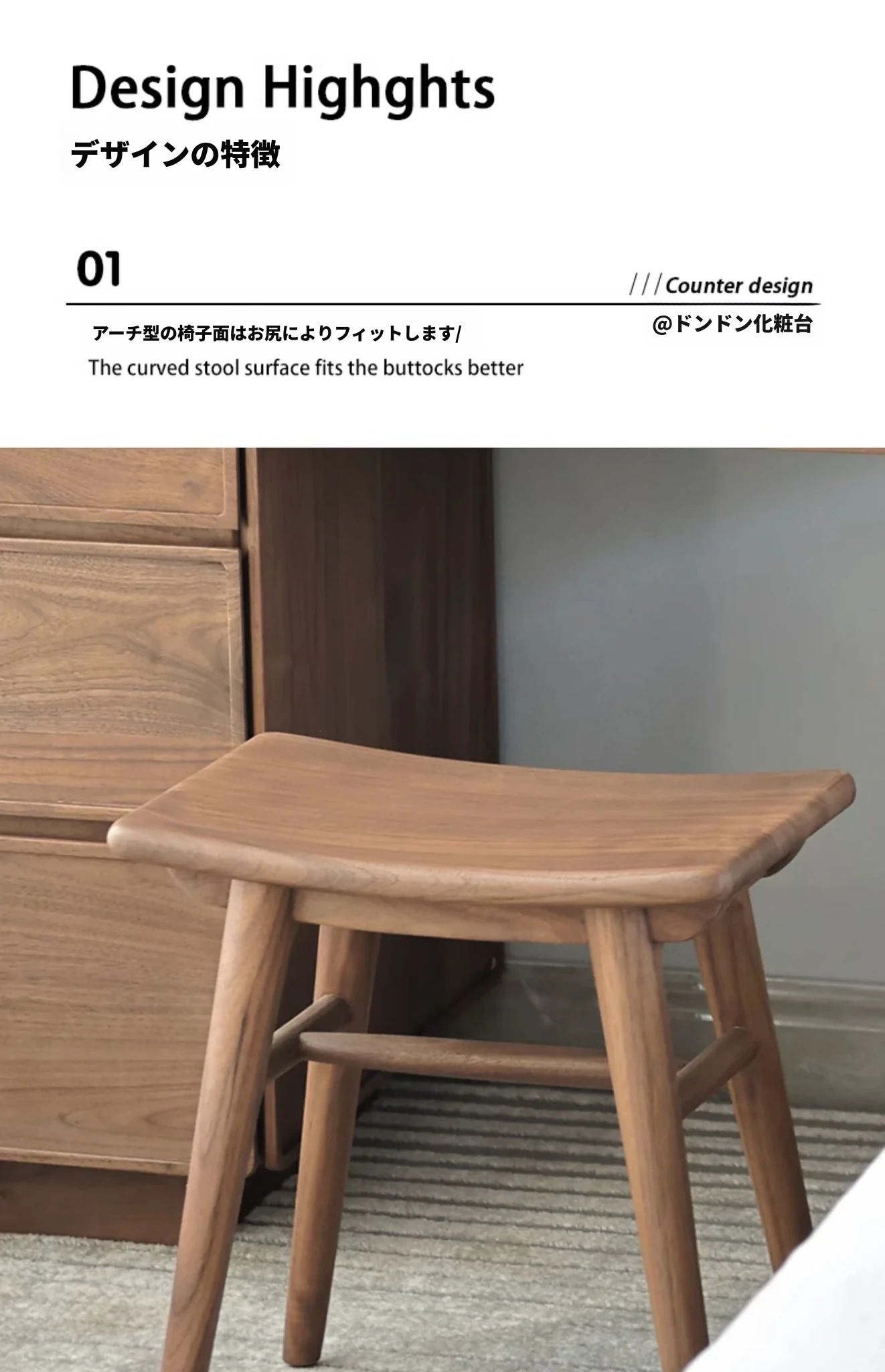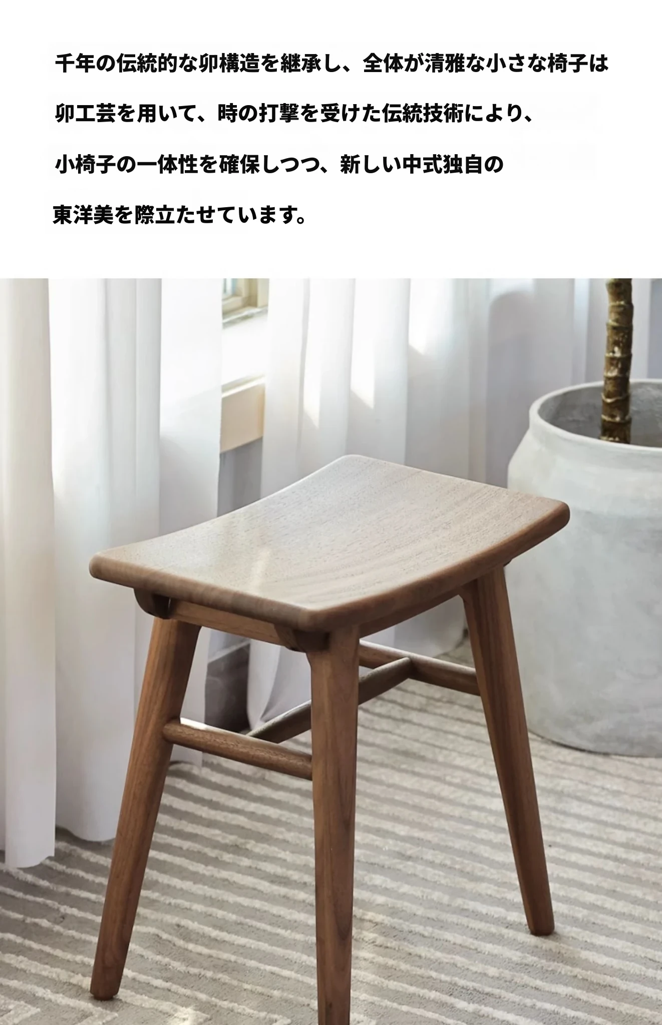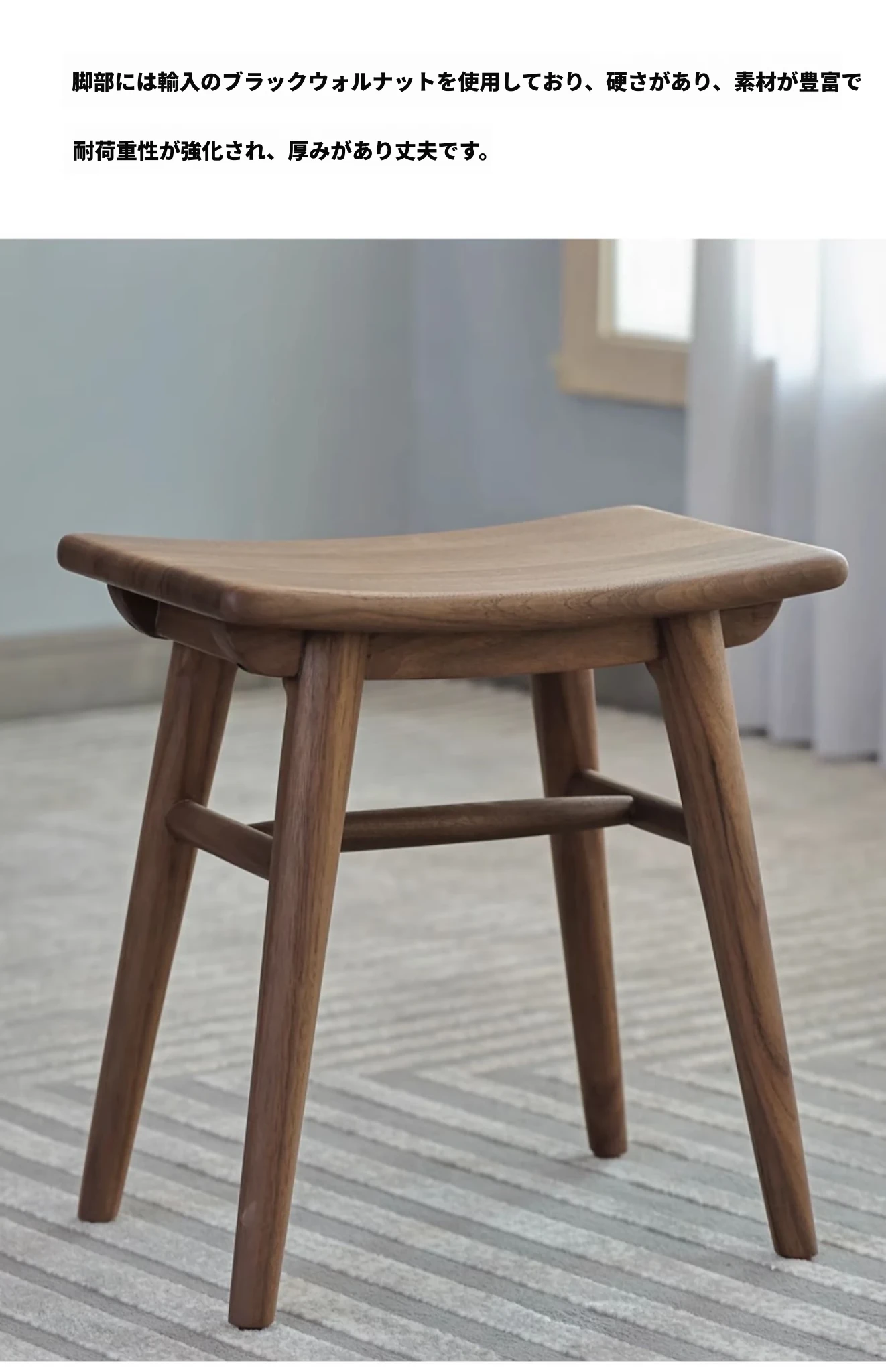 北欧・和風デザインの高級感あふれる無垢材のドレッシングテーブル用スツール!コンパクトサイズで狭いお部屋にも最適なブラックウォールナット製・多用途のカジュアルなダイニングスツール。