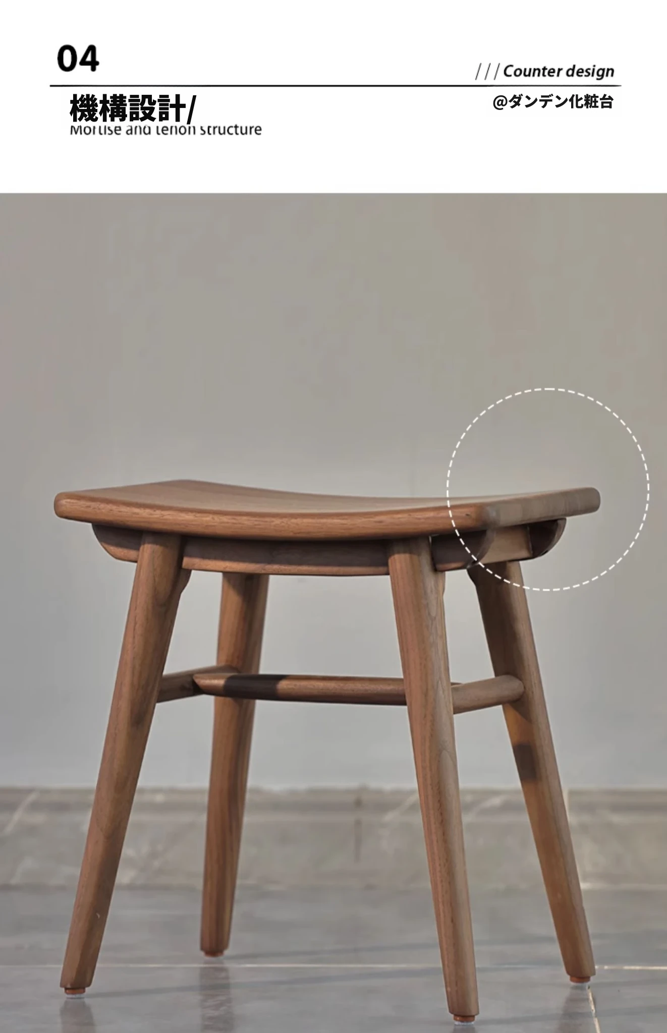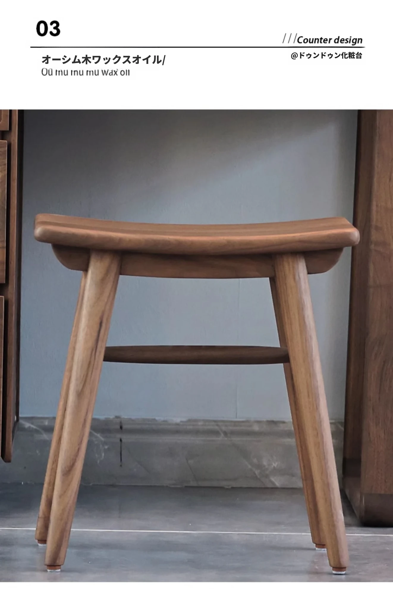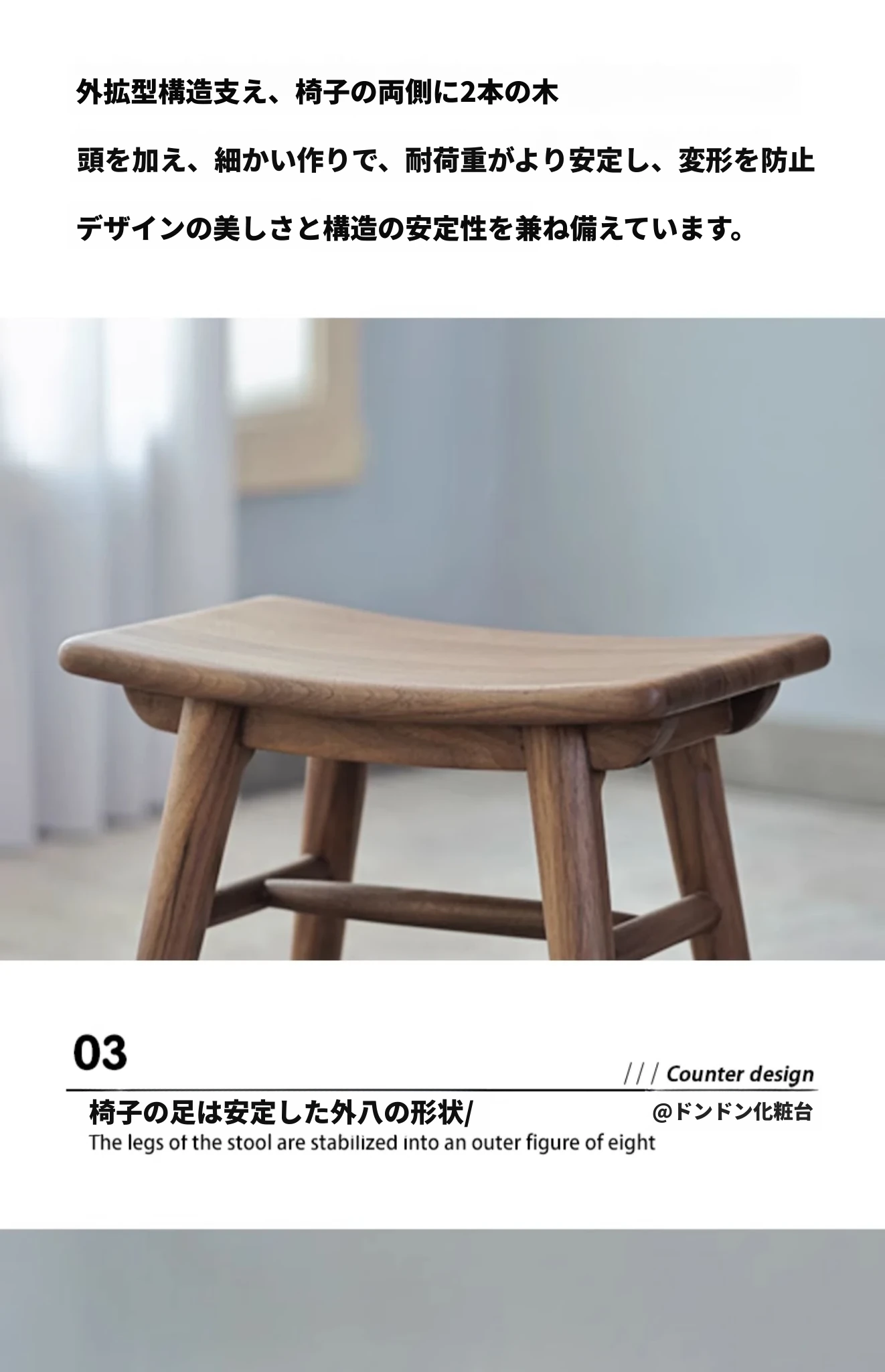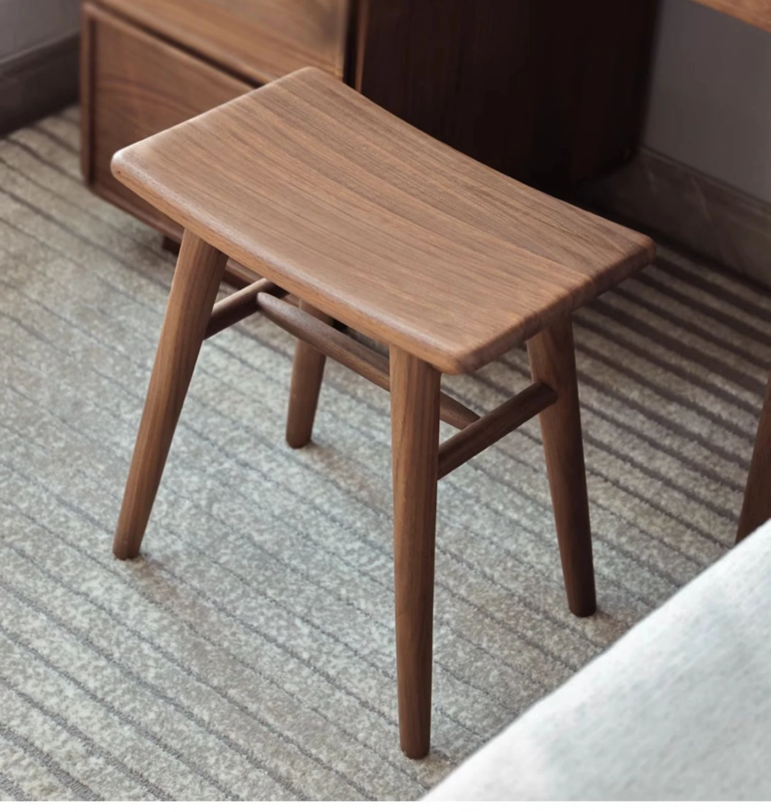 北欧・和風デザインの高級感あふれる無垢材のドレッシングテーブル用スツール!コンパクトサイズで狭いお部屋にも最適なブラックウォールナット製・多用途のカジュアルなダイニングスツール。