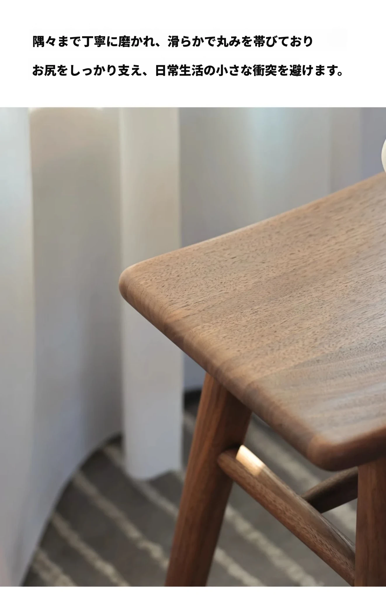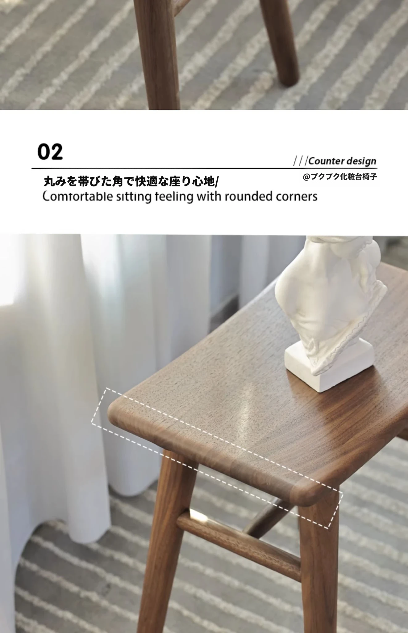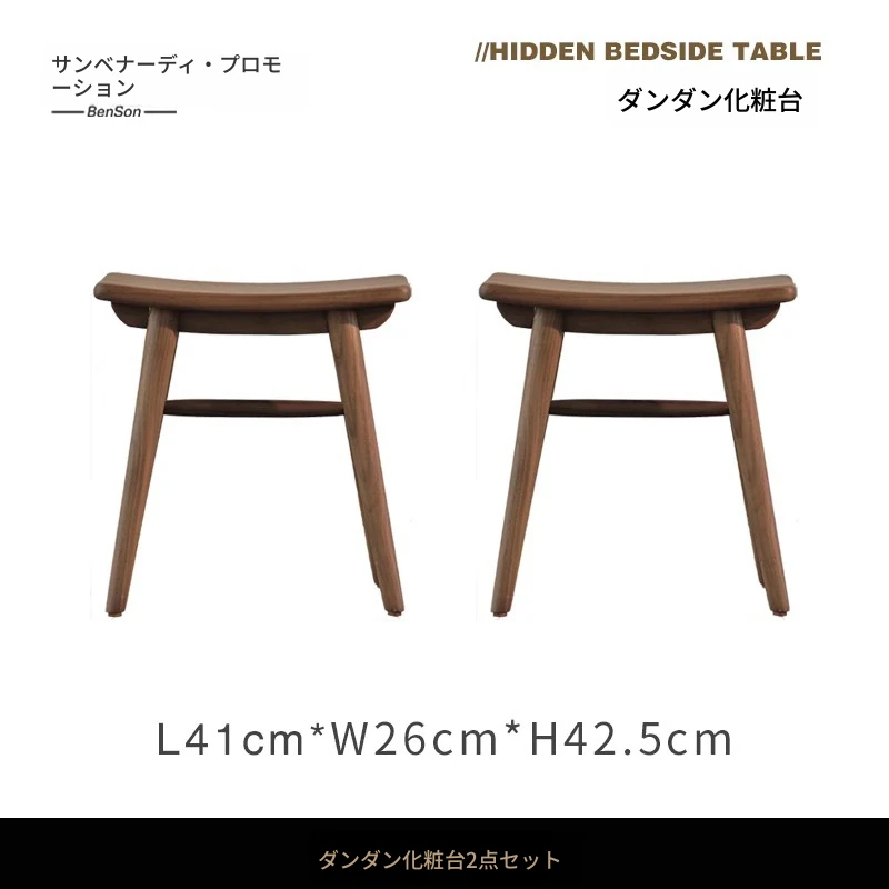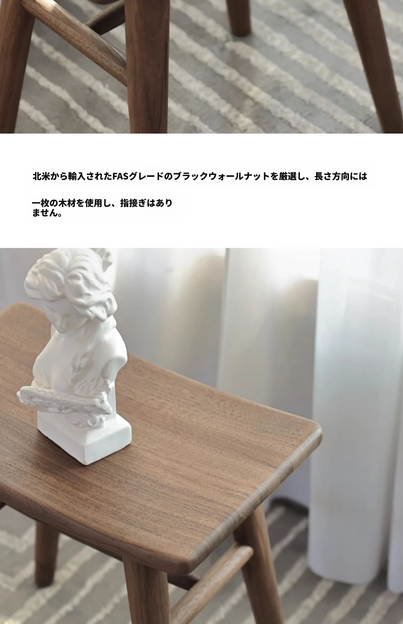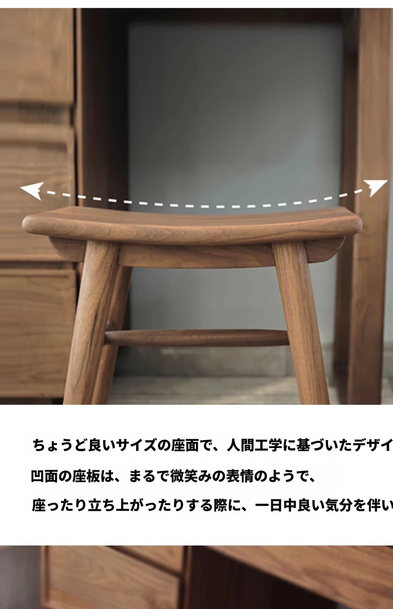 北欧・和風デザインの高級感あふれる無垢材のドレッシングテーブル用スツール!コンパクトサイズで狭いお部屋にも最適なブラックウォールナット製・多用途のカジュアルなダイニングスツール。