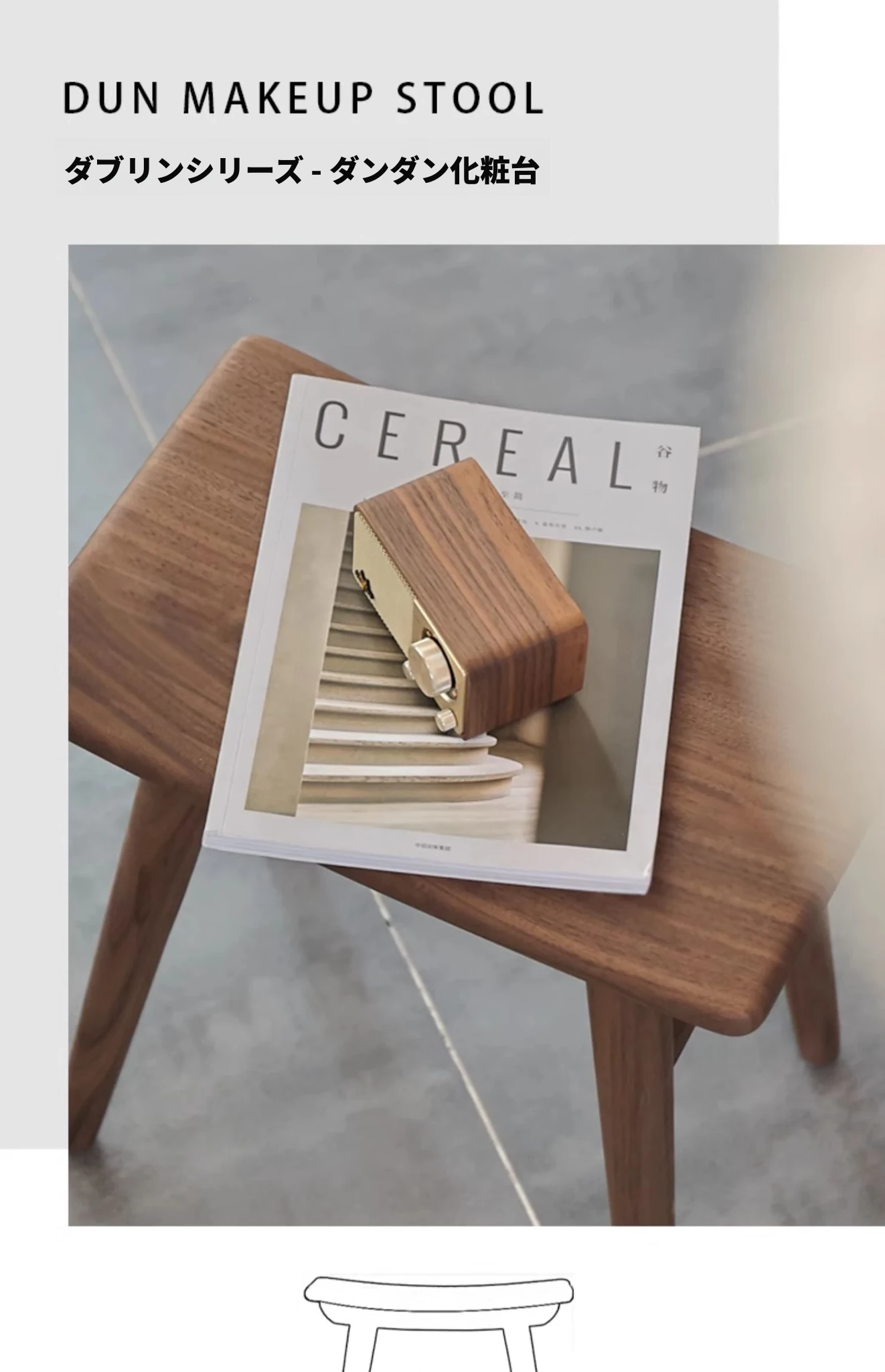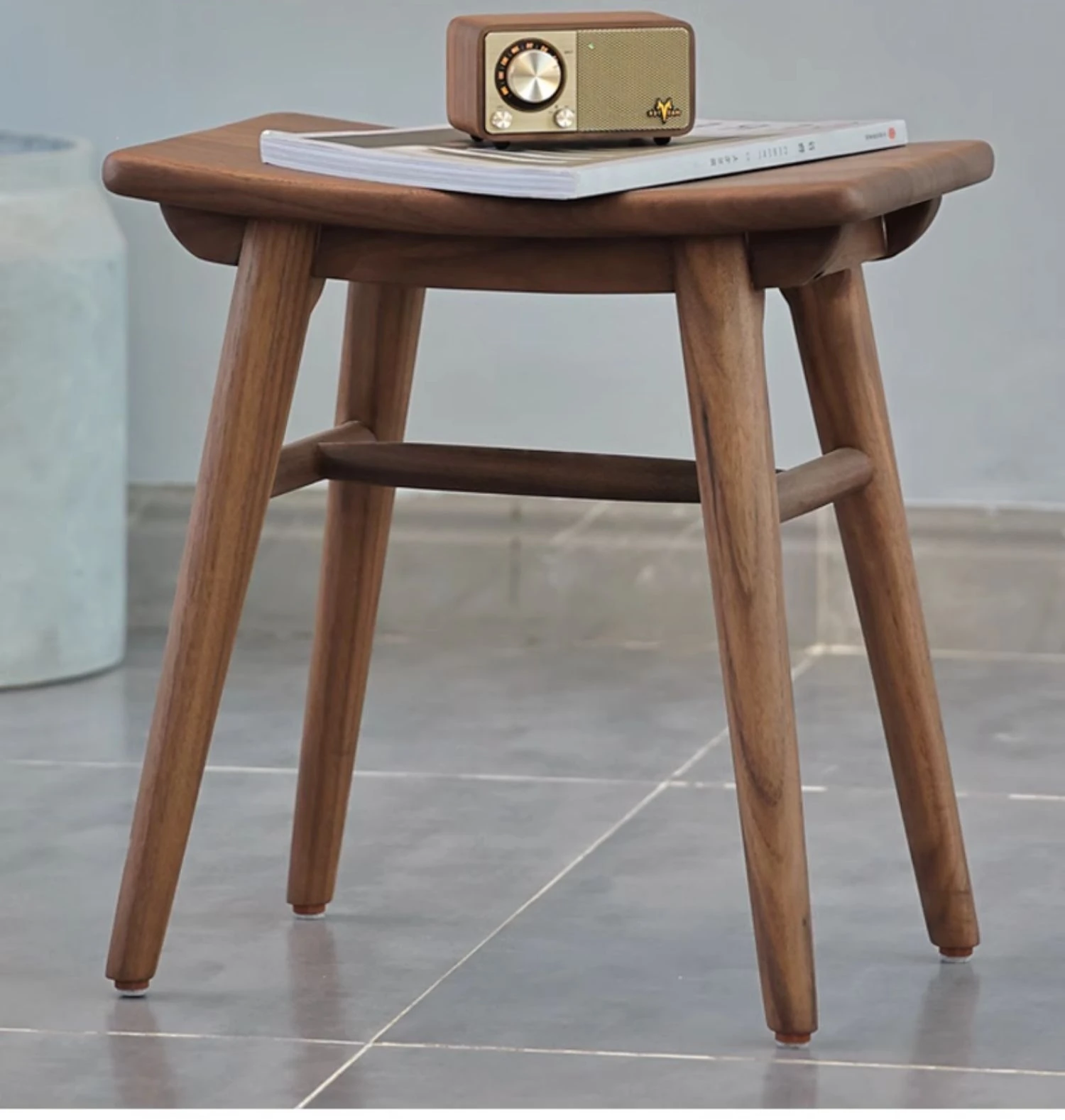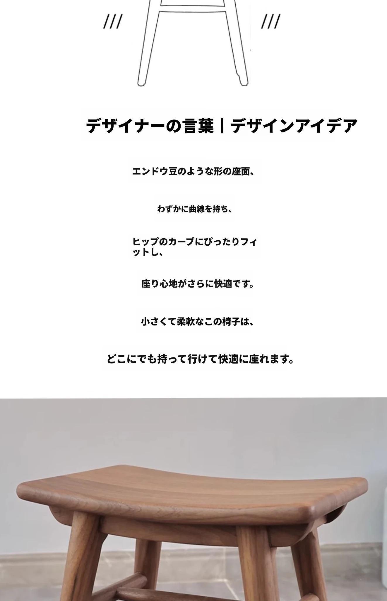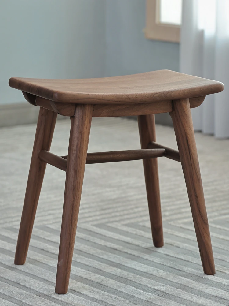 北欧・和風デザインの高級感あふれる無垢材のドレッシングテーブル用スツール!コンパクトサイズで狭いお部屋にも最適なブラックウォールナット製・多用途のカジュアルなダイニングスツール。