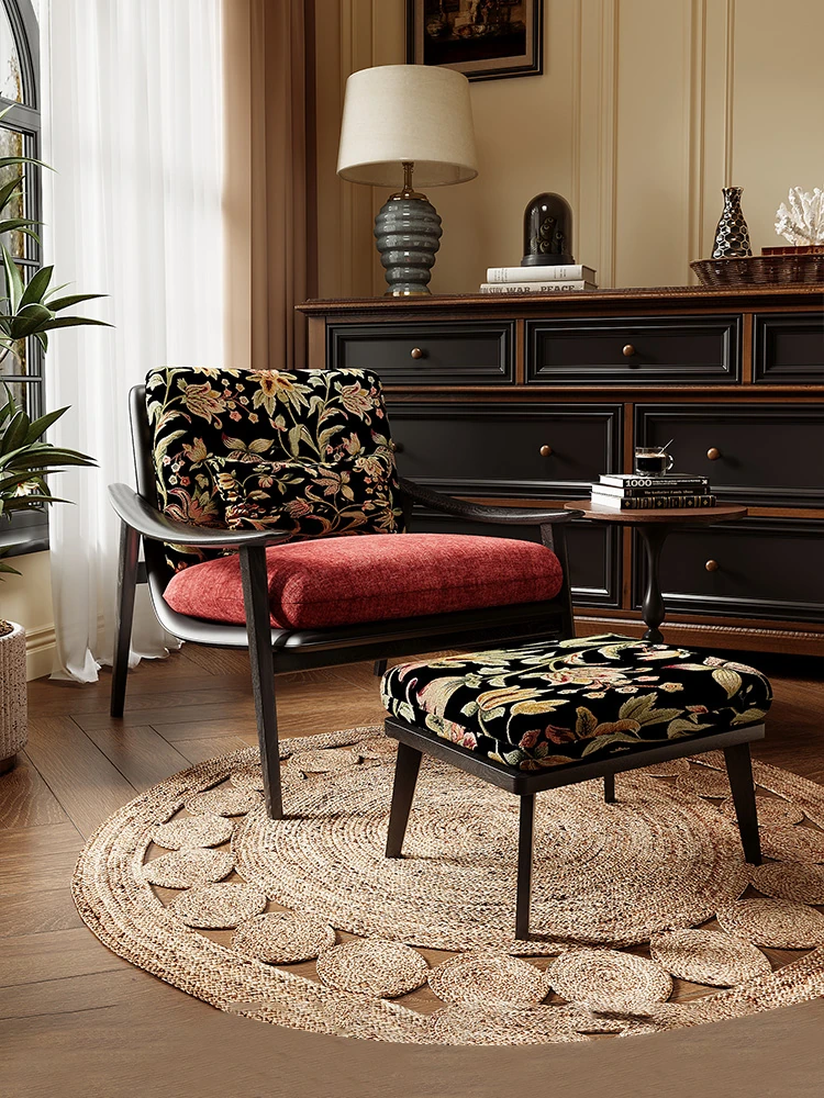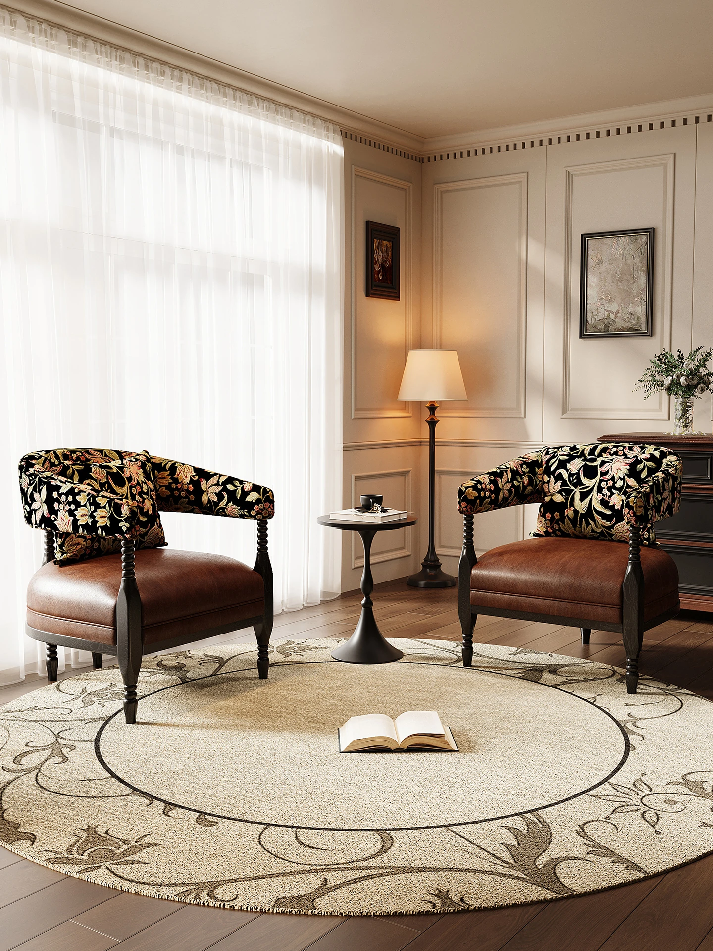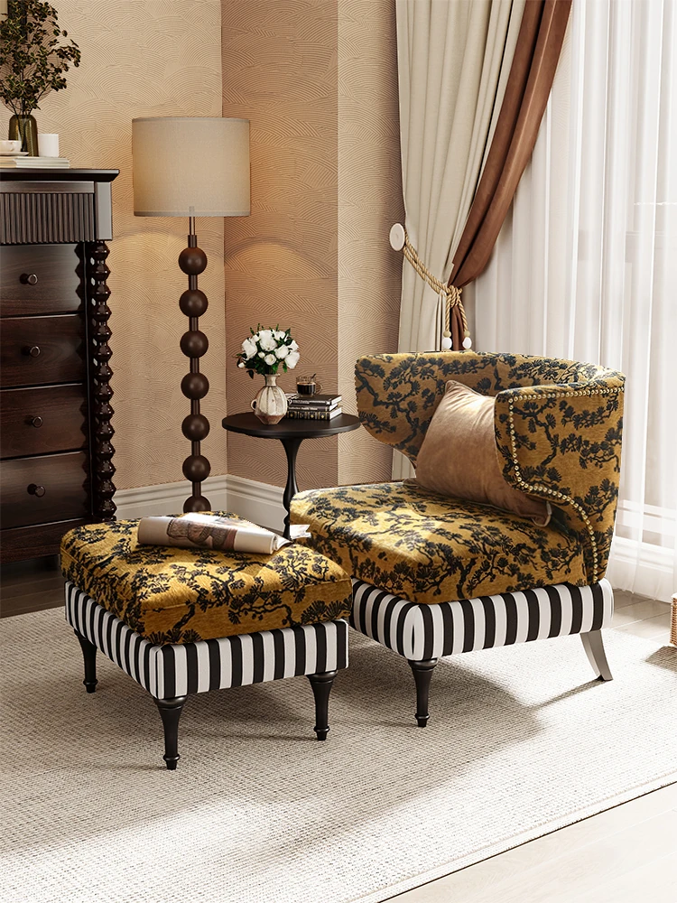 フレンチヴィンテージ単人用ソファチェア|リビングやバルコニーにぴったりのハンドメイドデザイン|高級感あふれる無垢材使用のレトロエレガントな伯爵椅子で、くつろぎのひとときをお楽しみください。