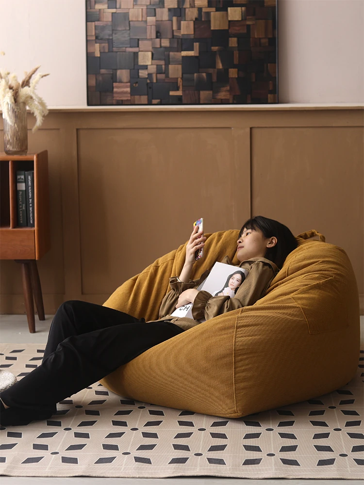 北欧スタイルのリラックス小ソファー、コーデュロイ素材のラウンジチェア!豆袋型で快適な座り心地、バルコニーや和室にもぴったりな一人用コンパクトソファ。おしゃれで居心地の良い空間を演出します!