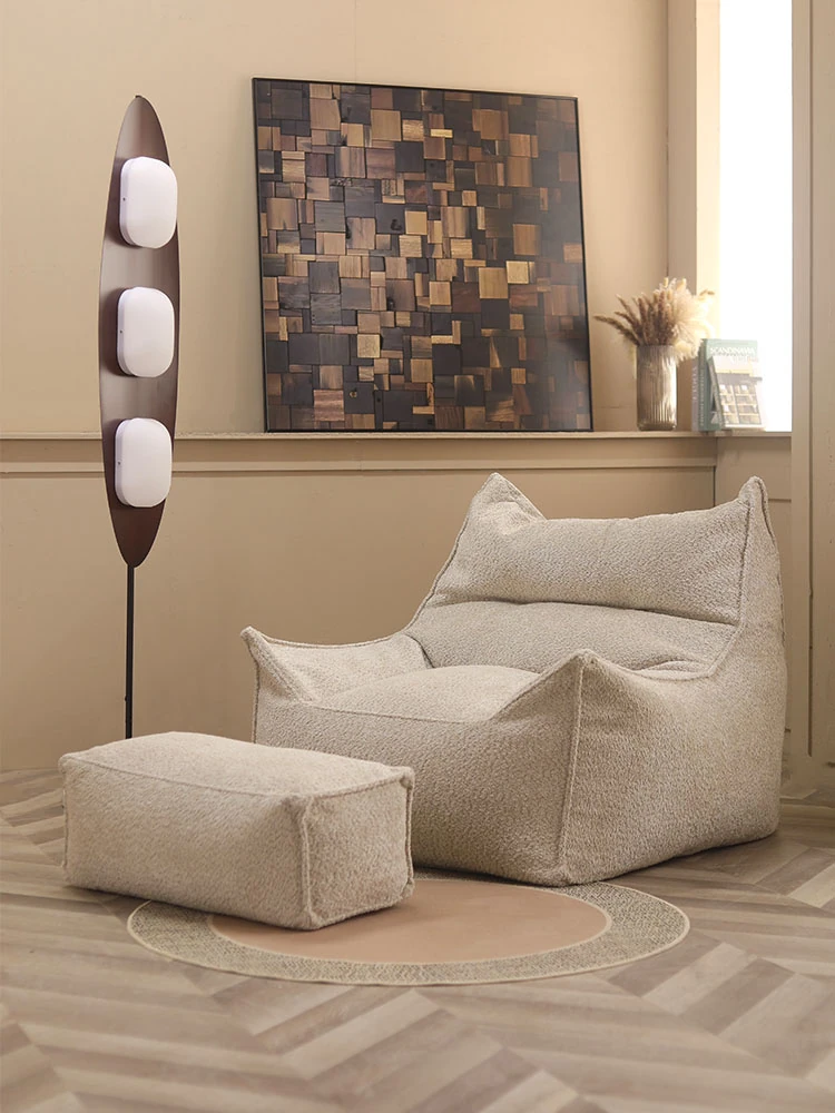 軽やかで贅沢なレトロ風一人掛けソファ - リラックスできるバルコニー用、狭い部屋にもぴったりのビーズクッションと畳スタイル。北欧風のリビングでくつろぎのひとときを。