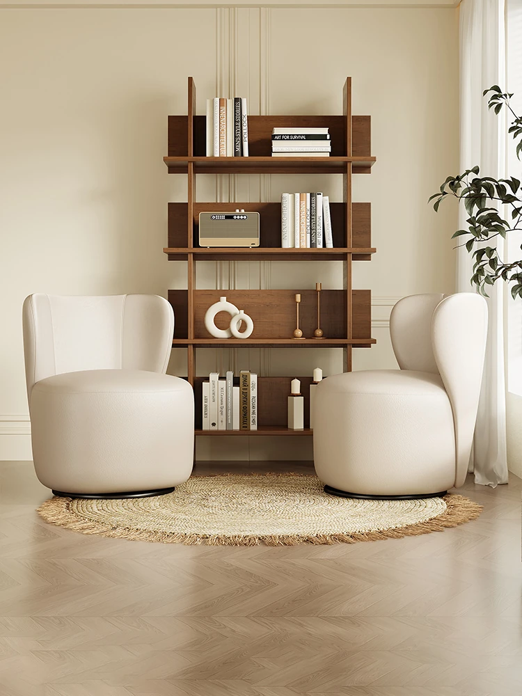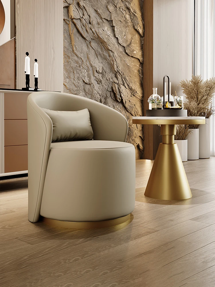 レトロな本革製シングルバルコニーソファ|シンプルでモダンなリクライニングチェア|寝室のドレッサースツールやラグジュアリーな受付椅子としても活躍!快適さとスタイルを両立した一品!