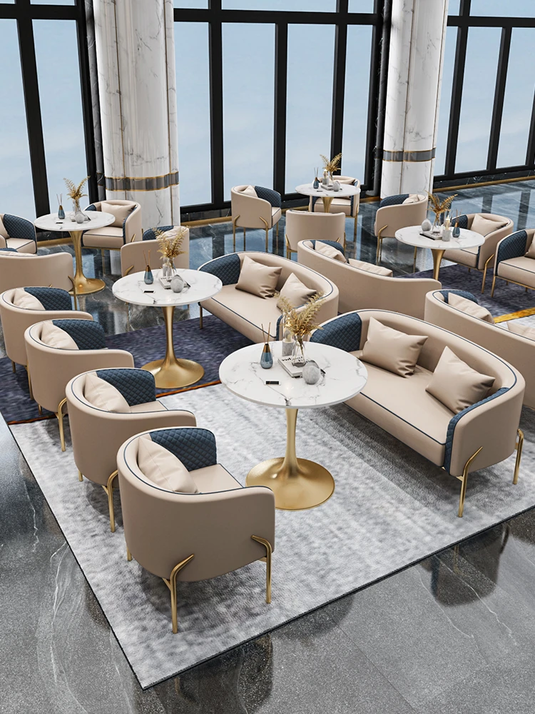 イタリアンラグジュアリー談話テーブルセット モダンな売り場用シングルソファ ホテルや美容院に最適な一卓四椅子のコンビネーションで、上質な空間を演出します。