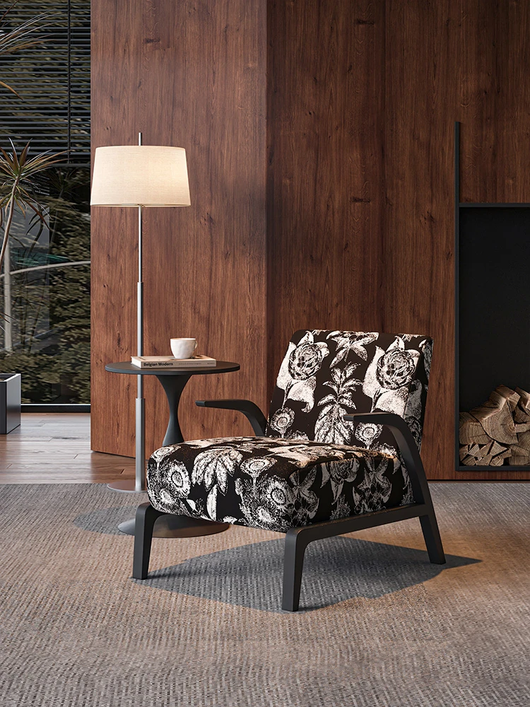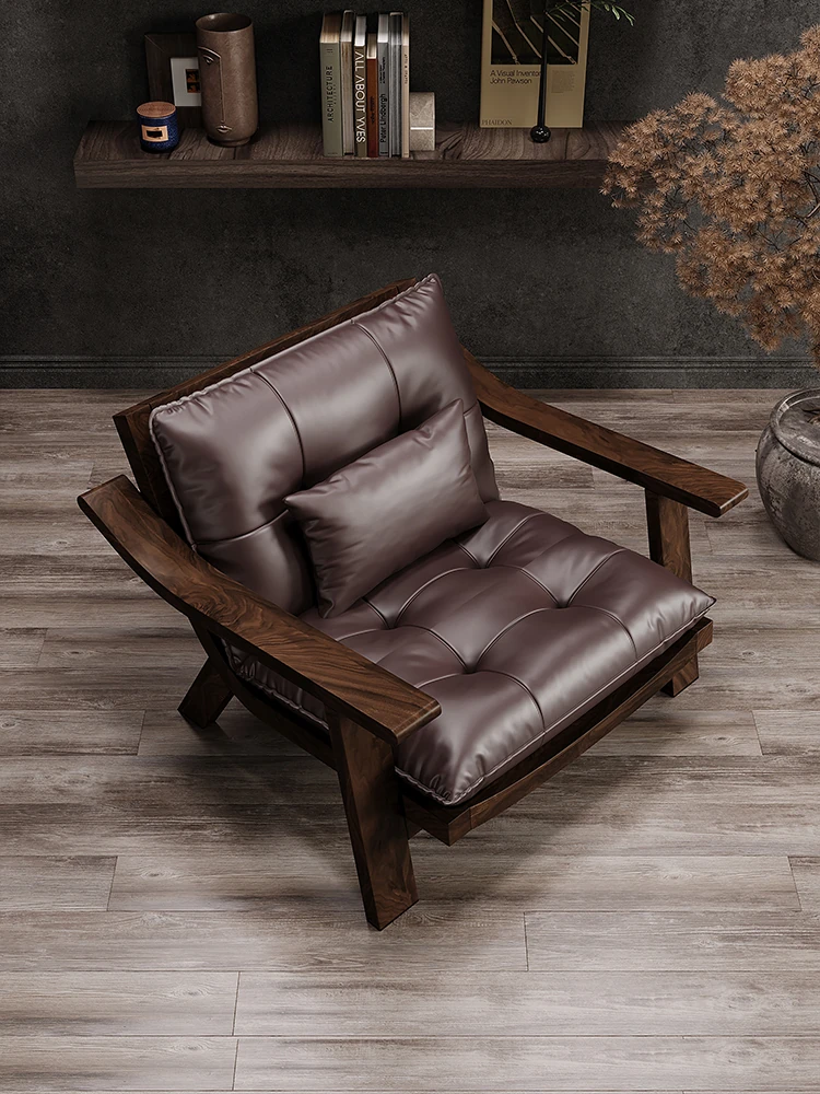 2025年デザイナーコレクション 北米産ブラックウォールナット製 モダンラグジュアリー シングルソファチェア 高級バックレスト付き リラックス用ティーチェア