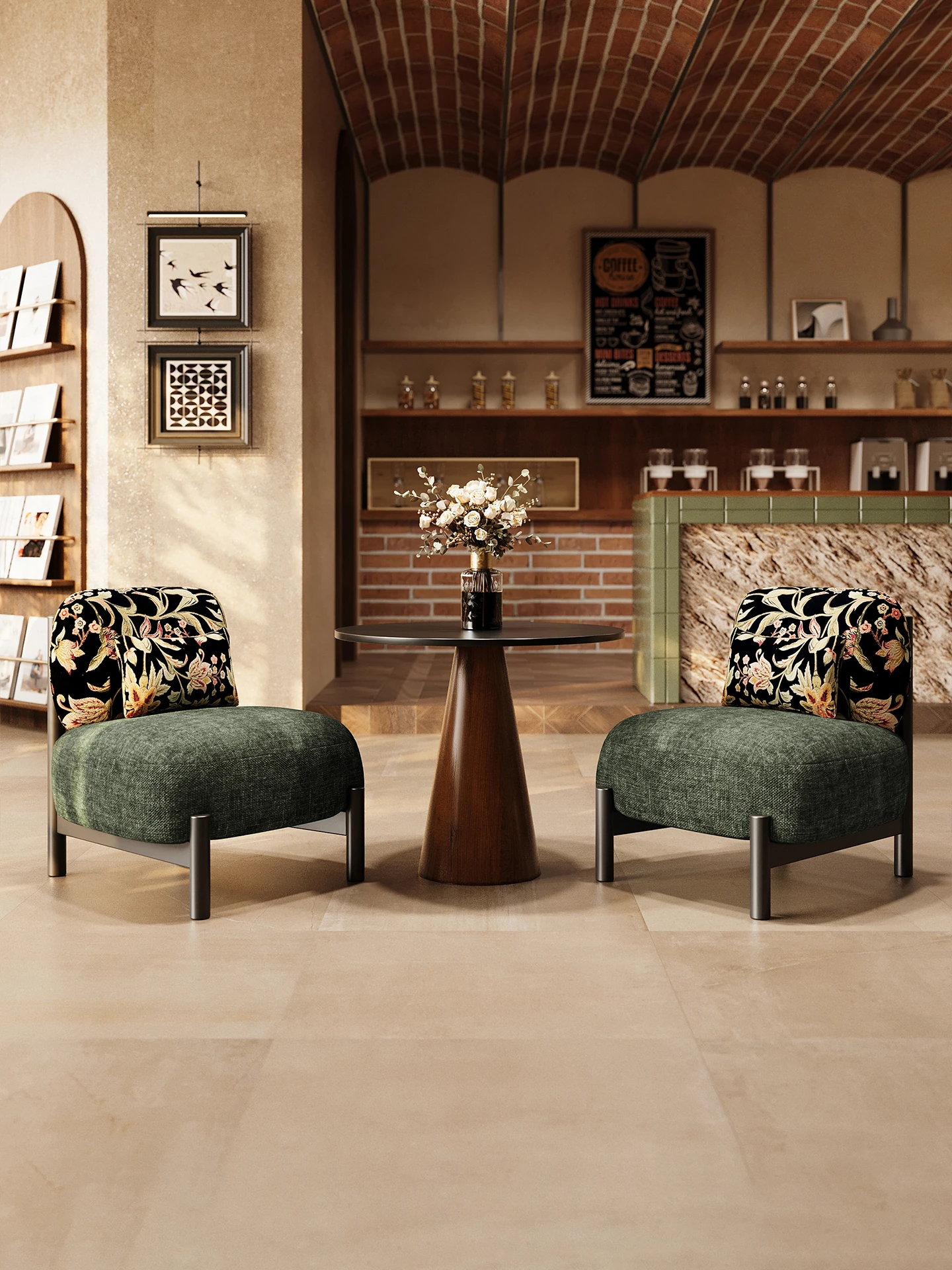 モダンなラグジュアリー一人掛けソファチェア|ホテル・不動産営業所・美容院・バルコニーに最適なリラックス&カジュアルな打ち合わせテーブルセット!おしゃれな空間を演出します。