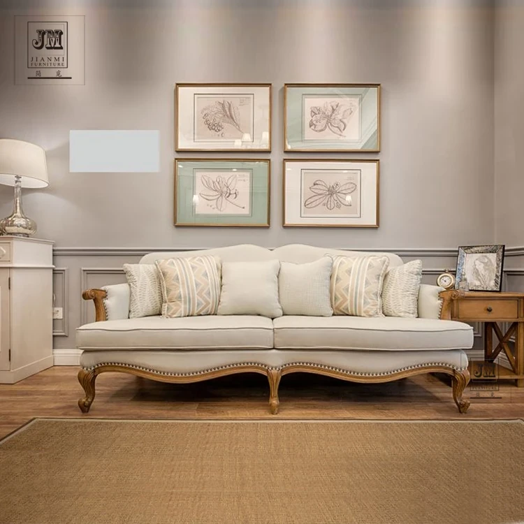 北欧風レトロデザインの実木ファブリックソファ、3人掛け・コンパクトサイズ、フレンチカントリー調の引き出し式ソファベッド、家庭用に最適!おしゃれで機能的な空間を演出します。