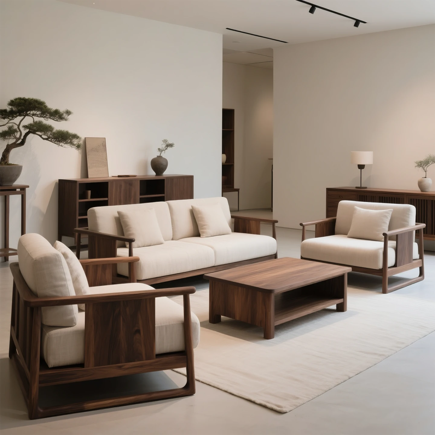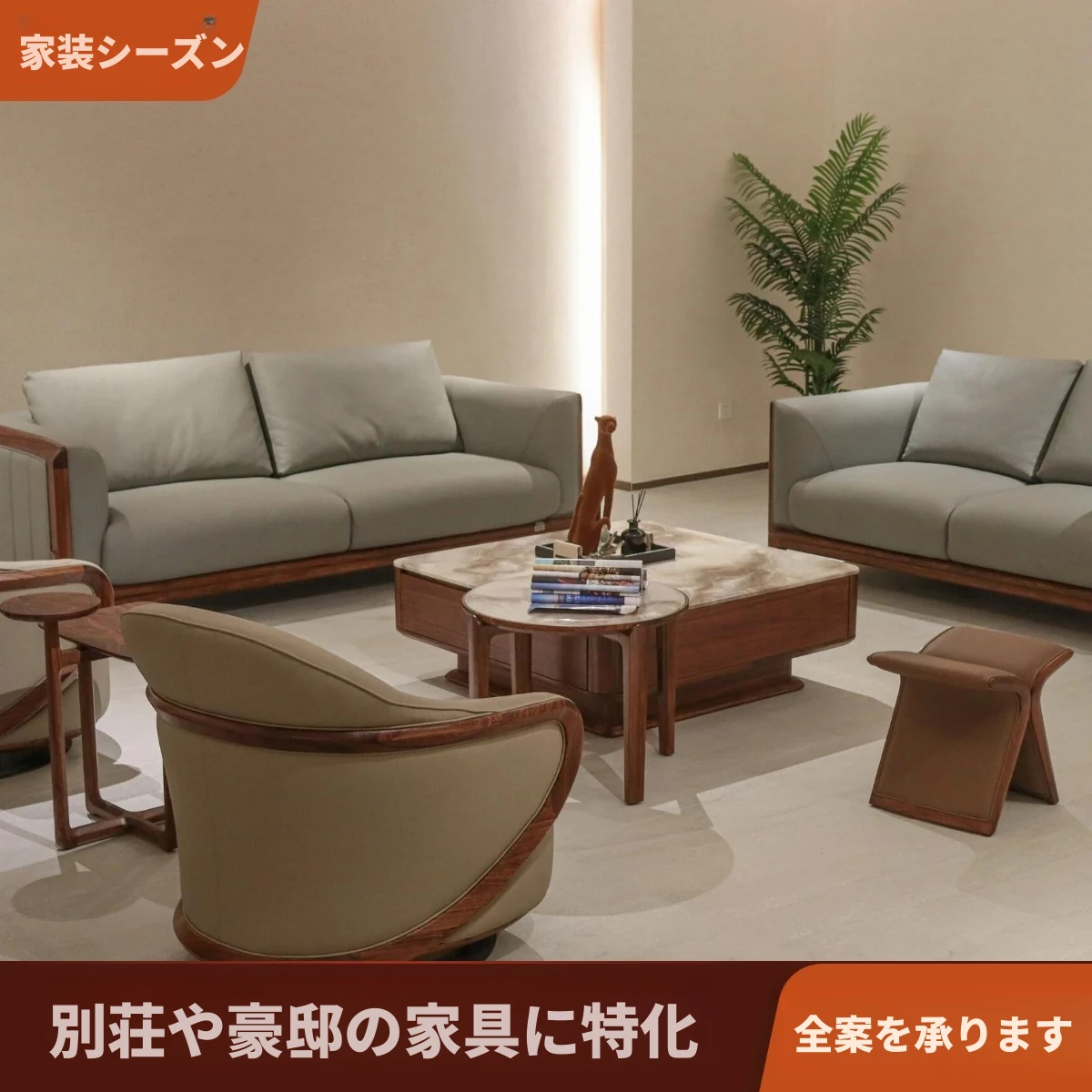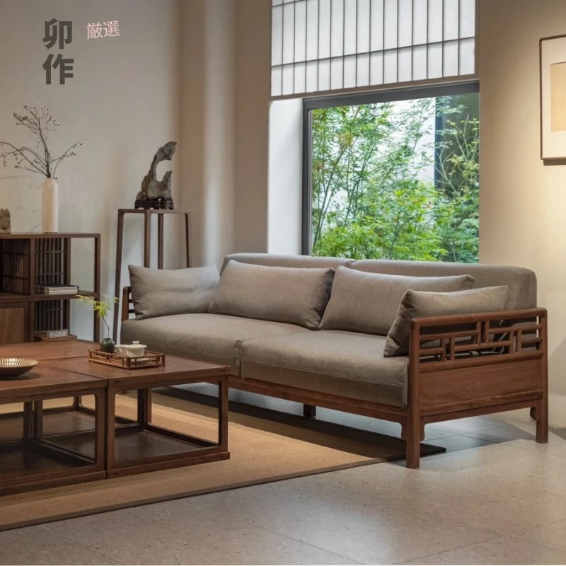 新中式実木ソファセット - モダンでラグジュアリーなデザイン、広々としたリビングに最適な高級クルミ材ソファ。快適さとスタイルを兼ね備えた上質な家具で、あなたの空間を格上げします!