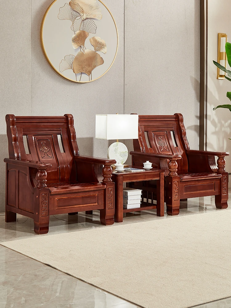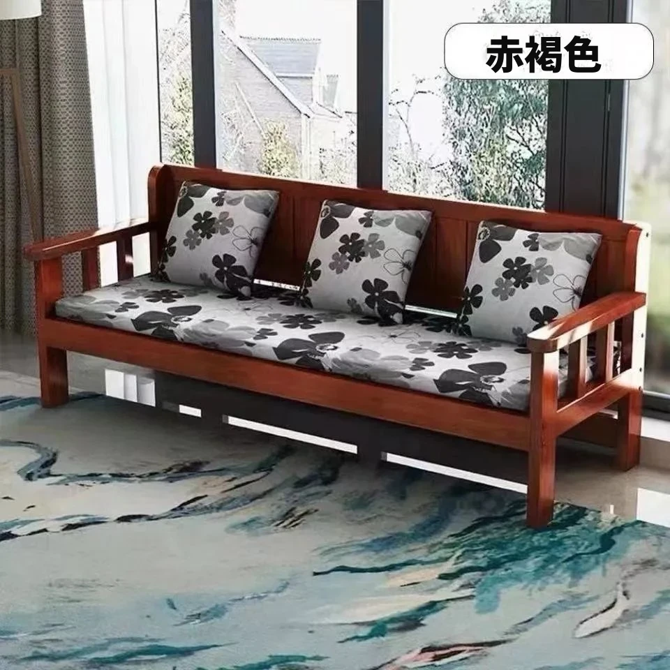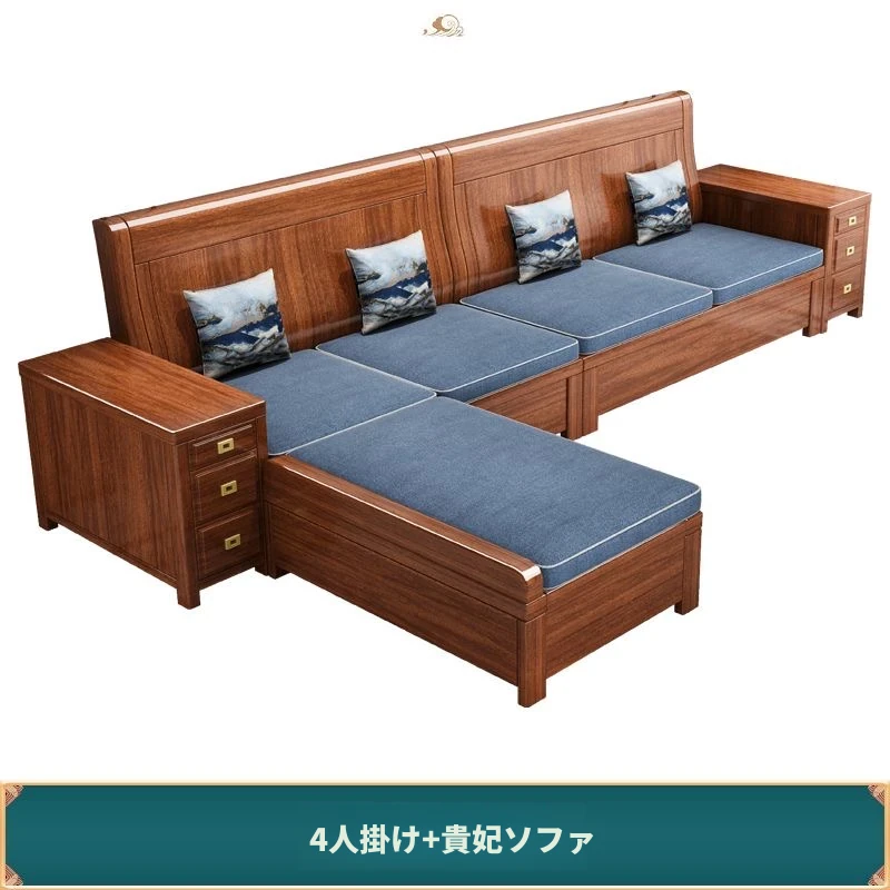 インドネシア産マホガニー無垢材ソファセット - モダンでシンプルな中華スタイル、大小どちらのリビングにもぴったり!冬夏両用で、収納付きの優雅なカウチ。快適さとデザイン性を兼ね備えた一品です。