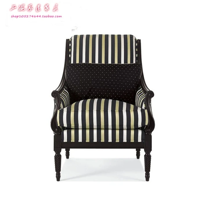 欧風レトロ無垢材シングルソファチェア|アメリカンファブリック使用のリラックス虎椅子|リビング・寝室・サロンに最適なスタイリッシュな一人掛けソファ