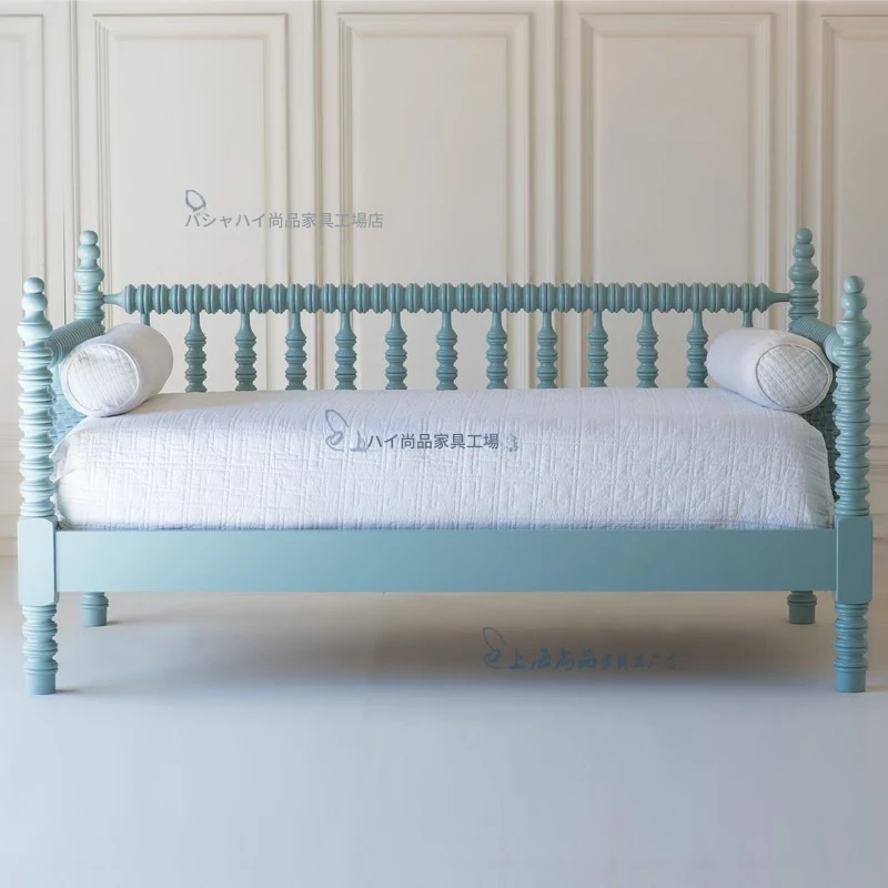 北欧風カントリースタイルの無垢材ベッド|ホワイトカラーのコンパクトリビングソファベッド|クリエイティブなベッドフットベンチ付き|シンプルで整然としたソファセット【小スペースにも最適!】