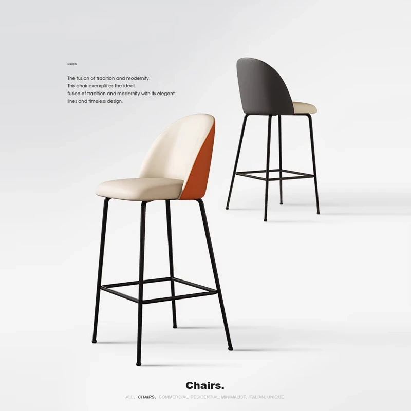 北欧スタイルの高脚チェア - ソフトパッドの背もたれ付き、シンプルでモダンなデザイン!バーやKTV、カフェにぴったりのリラックスチェア。おしゃれな空間を演出し、くつろぎのひとときを提供します。