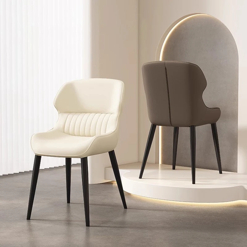 イタリアンミニマリストダイニングチェア|家庭用背もたれ付き|現代的なシンプルデザイン|ペットにも優しいキャットクロー皮製|快適さとスタイルを両立した一品!