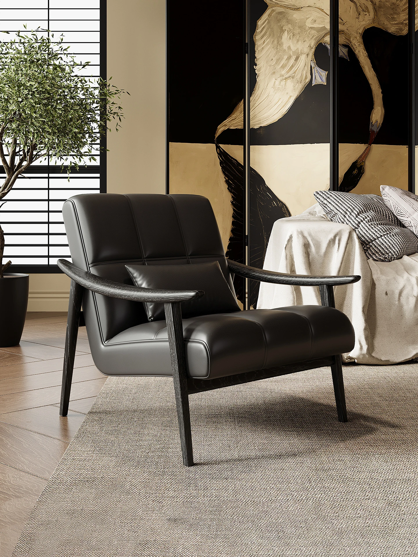 イタリアンミニマルデザインの本革・無垢材バルコニー用一人掛けリクライニングチェア Fynn アメリカンビンテージのホワイトアッシュ製ソファチェアで、洗練されたおしゃれなひとときをお楽しみください。