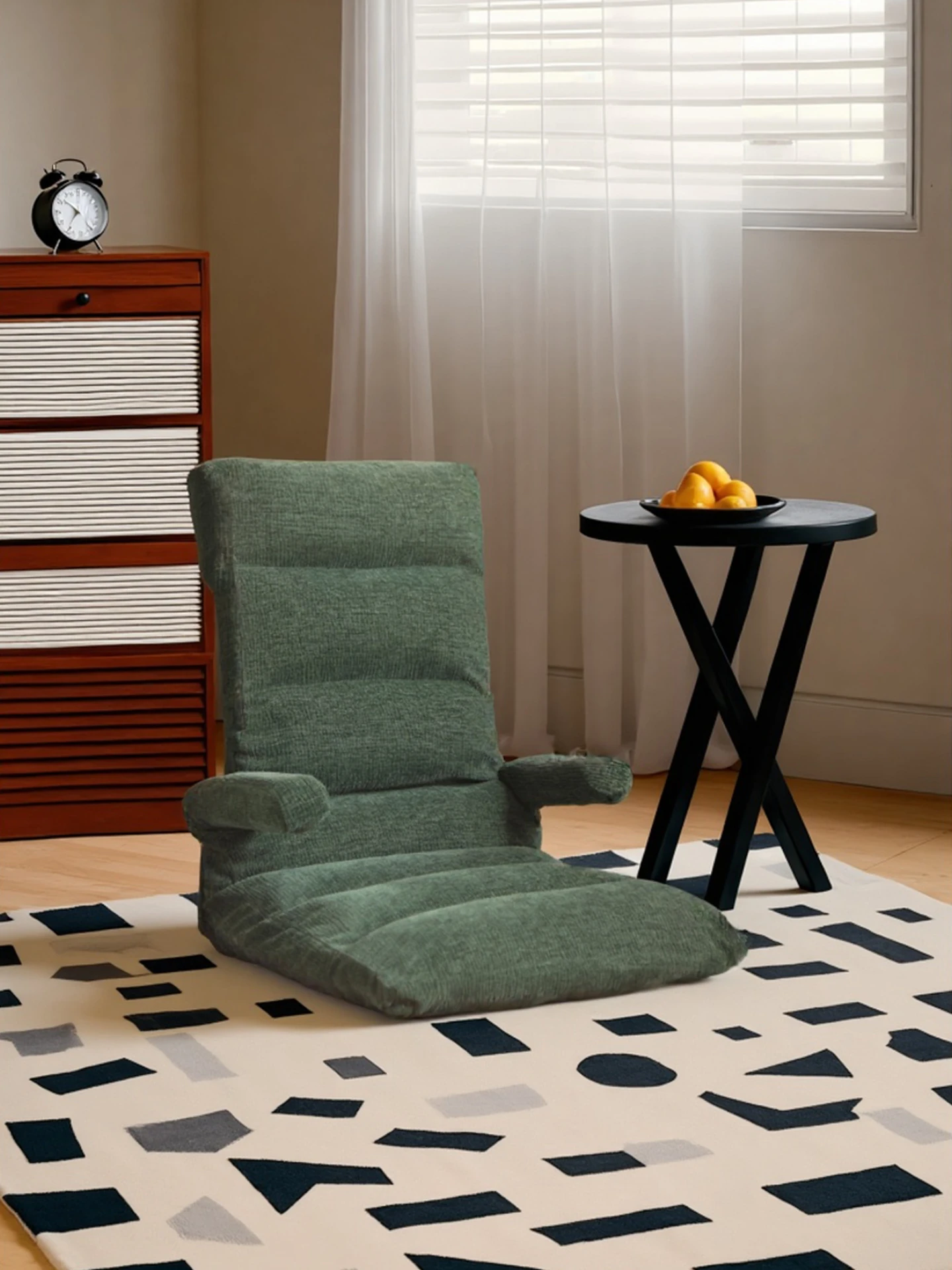 楽々リクライニングソファ!折りたたみ式の一人用小型ソファ。和風デザインで、寝室やベッド上、窓際でも使える快適なクッションと背もたれ付き。リラックス時間をもっと特別に!