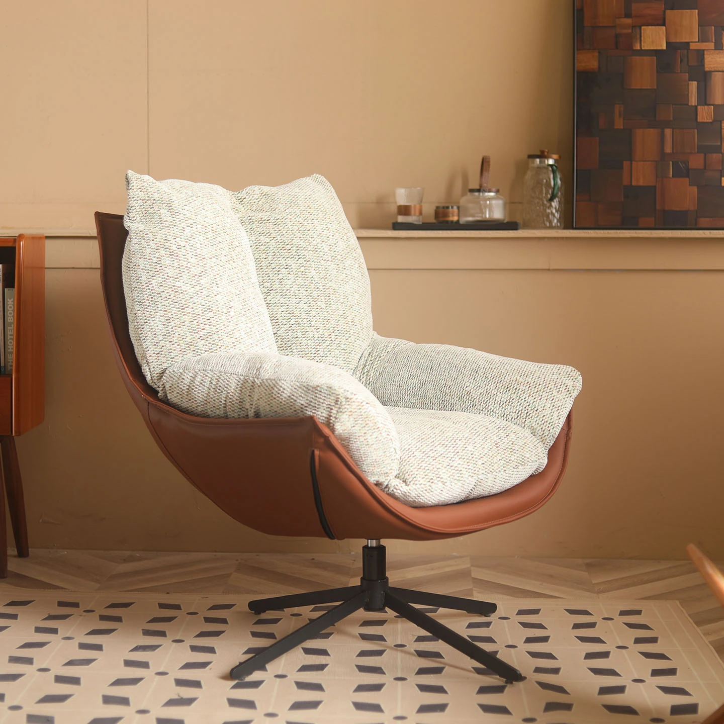 北欧モダンデザインのイタリアンラグジュアリー布製回転リクライニングチェア - リビングやバルコニーにぴったりなシンプルでスタイリッシュな一人掛けソファ!快適なくつろぎの時間をお楽しみください。