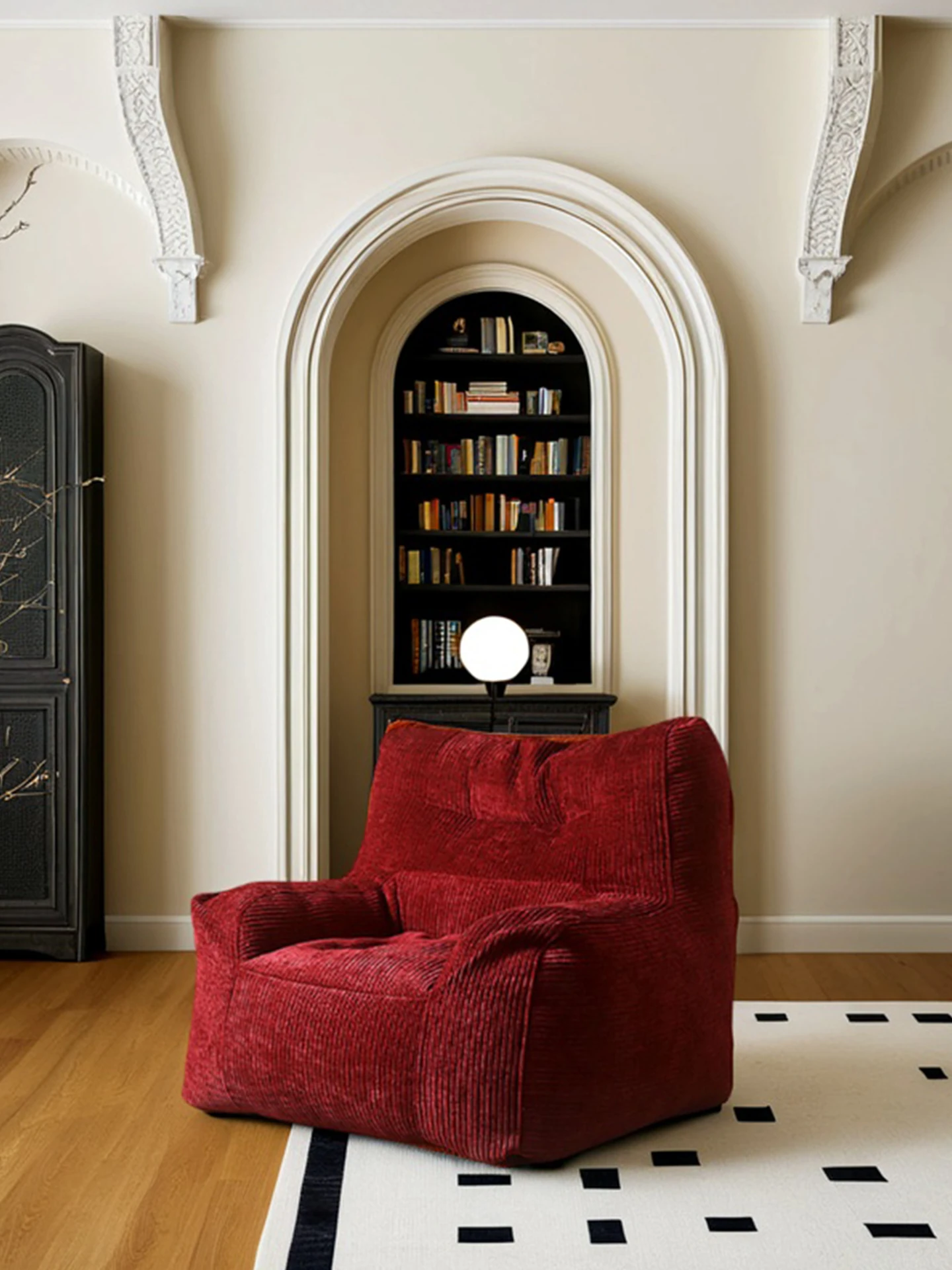 北欧風のラグジュアリーリラックスソファー!おしゃれな豆袋デザインで、バルコニーや和室に最適。心地よいサポートを提供する一人掛けソファで、リラックスタイムを楽しもう!
